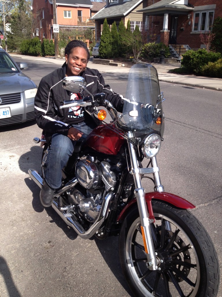 Let me share a few “highlights” from my trip back to Toronto from Woodstock. The 883 in the name of my Harley stood for the motor size: 883cc. To that point, the most powerful bike I’d ridden was my Vespa at 250ccs. It wouldn’t be an exaggeration to say that I probably looked like I was riding a bucking bronco on numerous occasions on that return trip. Remember: I didn’t have to deal with a clutch on my Vespa either. It’s also fairly safe to say that I stalled my bike almost every time I stopped it. That wasn’t really an issue on the country roads but on the streets of Toronto returning home that afternoon and heading out to my riding course the next morning, I stalled at pretty much every intersection. Although that trip from Woodstock to Toronto provided an interesting mix of terror and mortification, as you can see in the below pic from my arrival, I was proud and thrilled to finally have my own motorcycle!