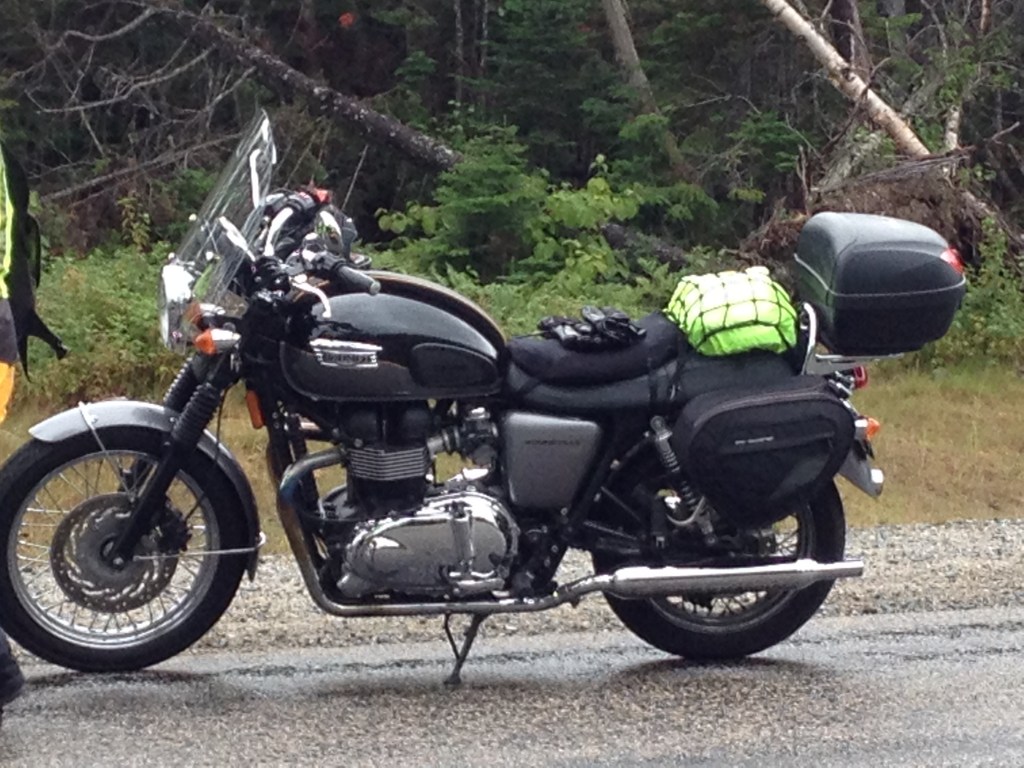 HI-VIZ (High Visibility) GEAR – I once read an article on motorcycle outerwear where the author posed a critical question, “do you want to be cool or do you want to be seen?” I can’t honestly say what my answer would have been if asked when I was a teenager; however, now my answer is a no-brainer. As you can see in the pic above, my beautiful two-piece Triumph touring suit was all black – with some reflective piping. So, days before I headed out to PEI, I purchased a hi-viz backpack. You’ll see in the above pic of my geared-up bike alone, even my tail bag has a hi-viz rain cover.