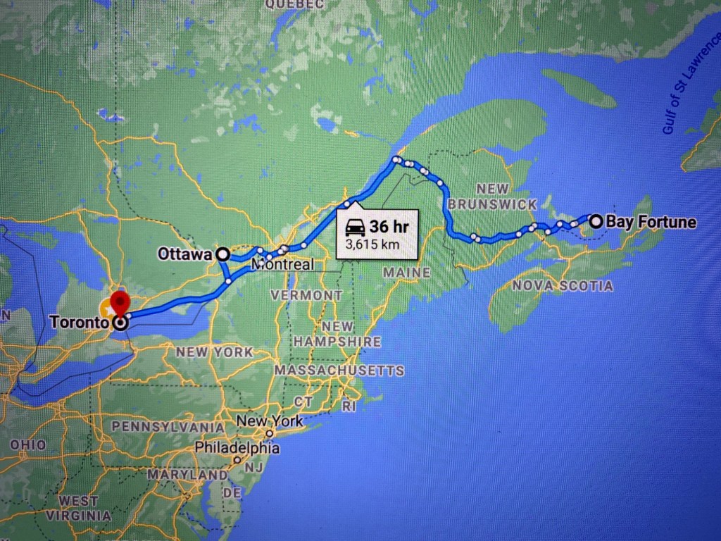 Now, if you look-up Ottawa to Bay Fortune, PE on-line, you’ll see that it’s a 14.5 hour trip. So, one could easily hop in a car at 6:00AM and arrive at PEI before 10:00PM – even accounting for the time zone difference. Here’s the thing: riding a bike is significantly different than driving in a car. You really should stop every 100 kms or so just to stay sharp; there is absolutely no forgiveness for micro-sleeps as there may be when you’re driving a car. Dozing while riding can be a fatal error (as can be when driving a car too). We each had our own favourite pick-me-ups – mine was (and still is) Red Bull. The other thing is that you really don’t want to be riding at night. In addition to the obvious safety concerns, the onslaught of bugs when riding at night with your one, highly attractive (to them) light, can be overwhelming (and nasty!).