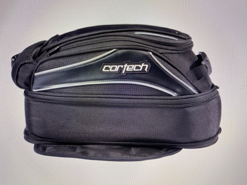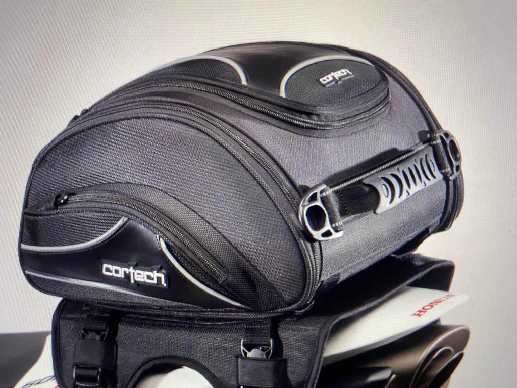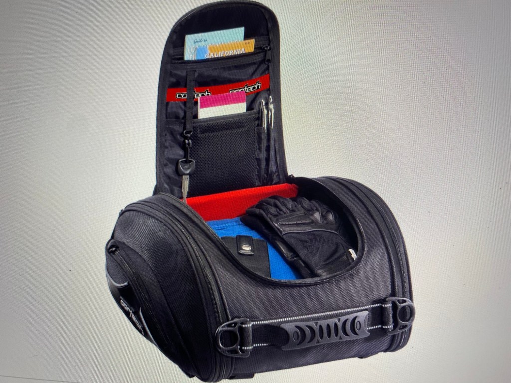 #2 & #4 – Tail Bag & Tank Bag: Like my saddlebags, my CorTech tail bag and tank bag are nylon. So, they’re light and they expand as needed too. The tank bag is great for holding your phone, wallet and other essentials (like snacks!). Many are magnetic allowing for quick removal heading into a restaurant, etc. on your trip. Unfortunately, the tank of my BMW is not metal so my original, magnetic tank bag was not usable. I had to purchase a new tank bag that affixes with clips. It holds a lot. Both the tank bag and the tail bag were really smart purchases.