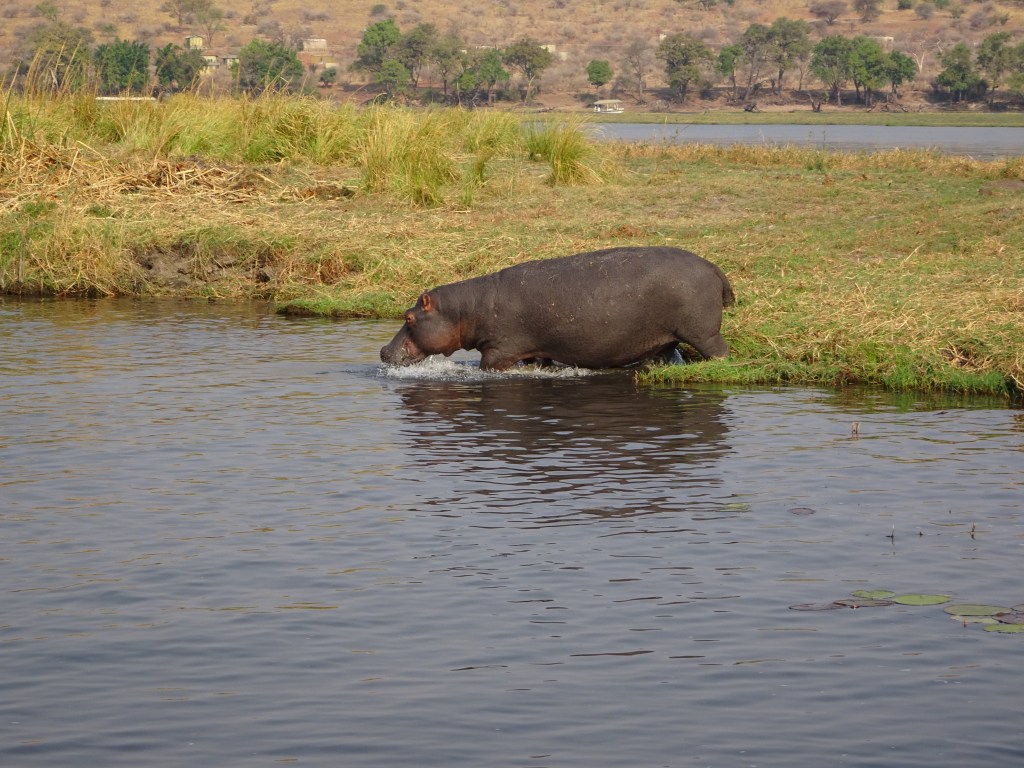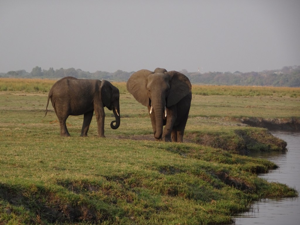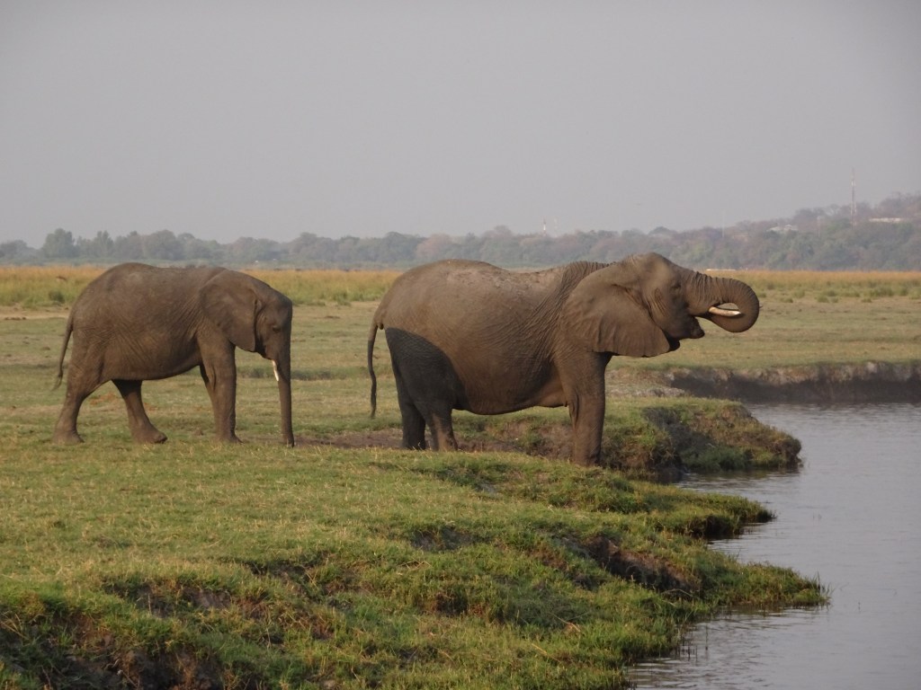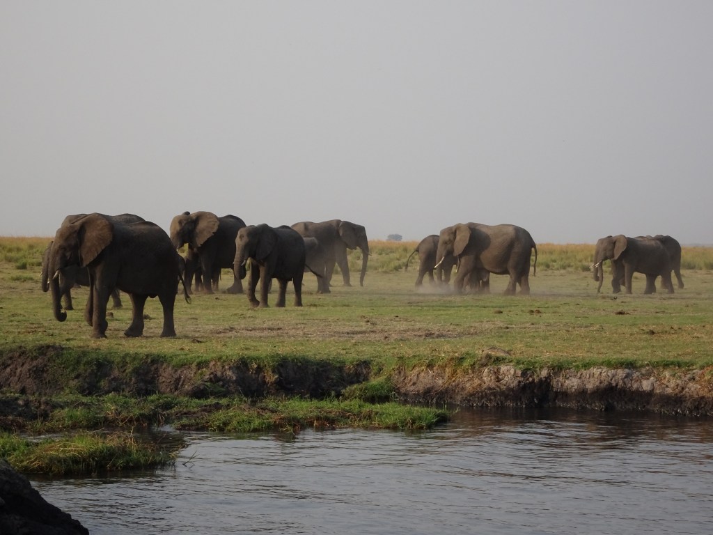 Entering Botswana was like entering a whole new world. Suddenly, there were fields with grazing elephants – I have no idea why there were no such scenes in Zimbabwe (at least not where we were). Believe me, it all felt rather surreal: four days prior I was at my front door in Toronto, Canada and now, after having witnessed the spectacular Victoria Falls, I was in Botswana driving past fields with grazing elephants! Truth is, that was really nothing compared to what I was about to experience in the coming weeks – starting with a sunset river cruise we’d take that very night.
